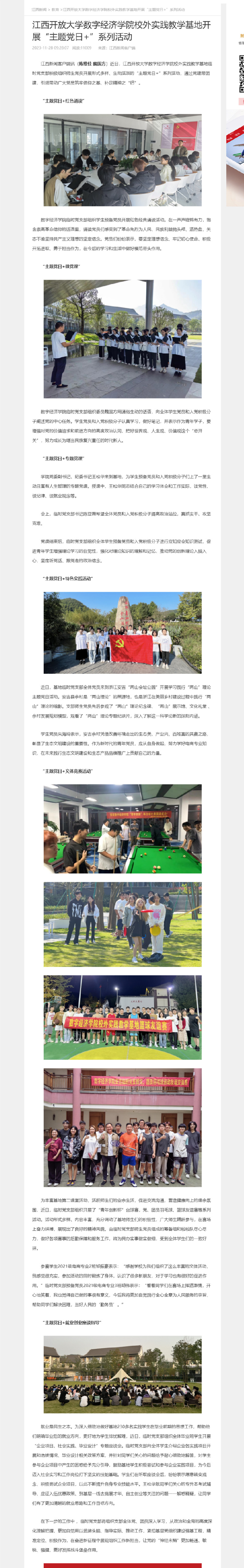 江西新闻客户端讯(陈维佳 魏国方)近日,yl23455永利官网数字经济学院校外实践教学基地临时党支部积极组织师生党员开展形式多样、生动活泼的“主题党日+”系列活动,通过党建带团建,引领带动广大党员筑牢信仰之基、补足精神之“钙”。