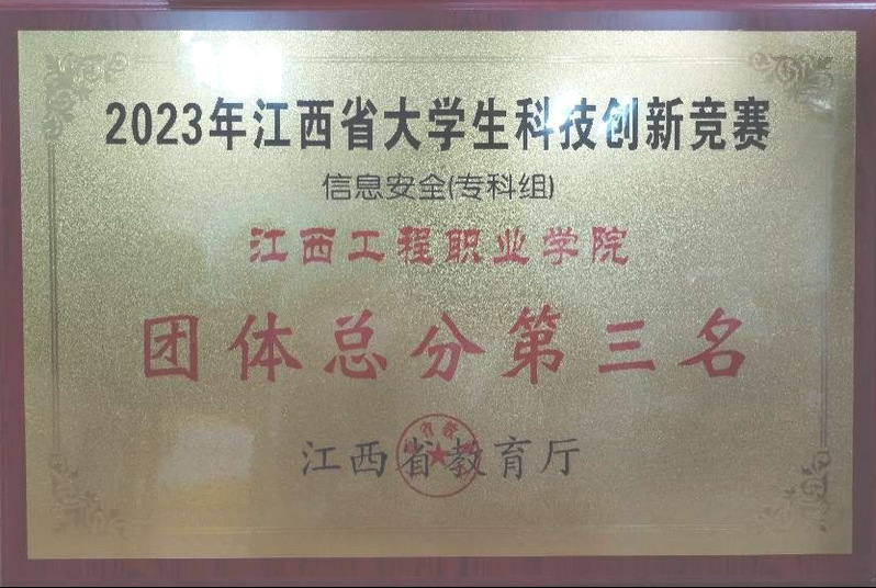 在2023年江西省大学生科技创新竞赛中,学校在信息安全、工业设计、信息技术知识、BIM毕业设计、成图技术与产品信息建模、商业精英创新创业、电子商务“创新创业”、英语应用能力等多个项目中获奖16项。其中一等奖3个,二等奖5个,三等奖8个;黄伟力、漆彦青、戴璇、陈亚薇、万文静等5名教师获“优秀指导教师”荣誉称号;学校在信息安全(专科组)竞赛项目中获得团体总分第三名。