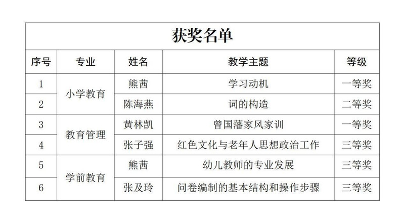 国家开放大学教育类专业课程思政优秀教学设计方案征集活动中,学校人文与健康学院选送的6个作品均在此次活动中获奖,其中一等奖2项,二等奖1项,三等奖3项。
