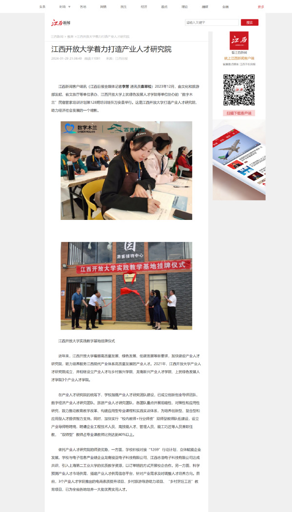 2023年12月,由文化和旅游部发起、省文旅厅等单位承办、yl23455永利官网上犹绿色发展人才学院等单位协办的“数字木兰”民宿管家培训计划第128期培训班在万安县举行。这是yl23455永利官网打造产业人才研究院,助力经济社会发展的一个缩影。