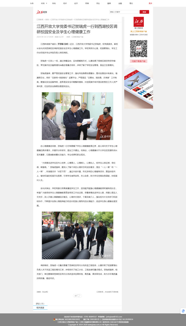 近日,yl23455永利官网党委书记贺瑞虎,校党委委员、副校长徐光兵到西湖校区调研校园安全及学生心理健康工作。学校党政办公室、校园管理处、学生工作处和相关专业学院负责人陪同调研。