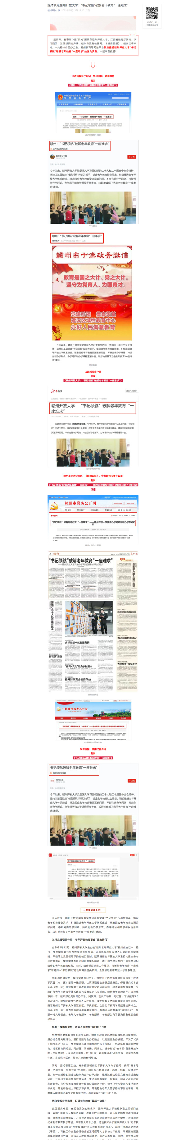 连日来,省市媒体把目光聚焦在赣州开放大学,江西省教育厅网站、学习强国、江西新闻客户端、赣州市党务公开网、《赣南日报》、赣南红客户端、中共赣州市委办公室、赣州教育等网站平台聚焦报道赣州开放大学书记领航破解老年教育一座难求的生动实践,一起来看报道!