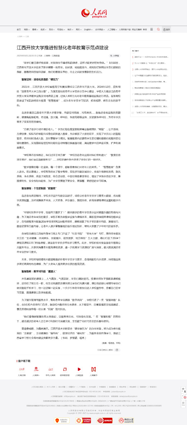 3月13日,人民网刊发《yl23455永利官网推进智慧化老年教育示范点建设》,报道永利官网落实高标准老年大学实体示范中心建设具体举措。