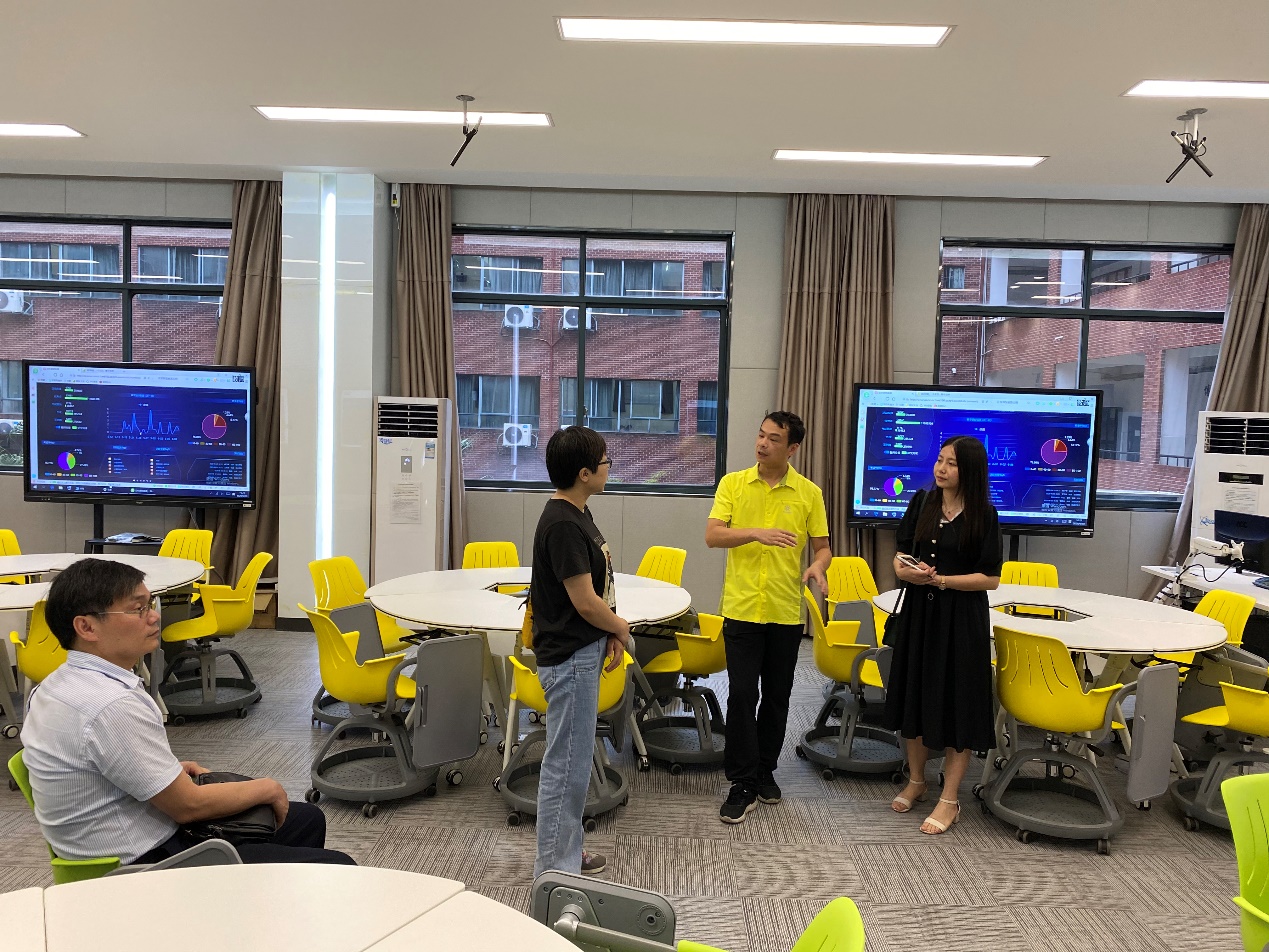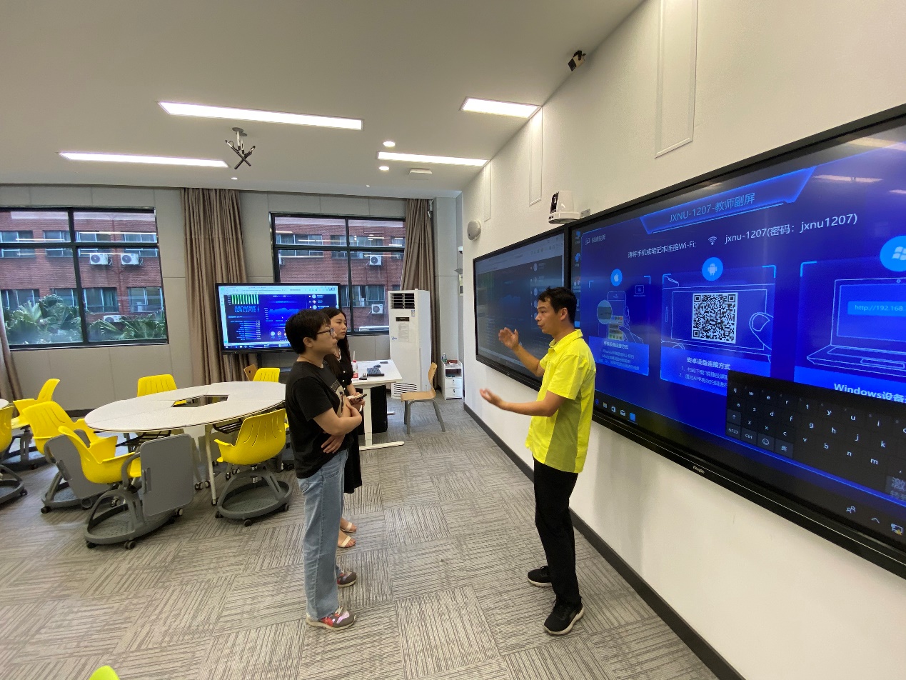 6月10日,我中心综合科科长郭麟、科员刘芸赴江西师范大学调研智慧教室建设情况。本次调研首先由江西师范大学现代教育技术中心主任姜辉带领大家参观该校的智慧教室管理中心;然后由赵高勋老师详细介绍师大智慧教室1.0的功能和特点;最后参观了去年竣工的智慧教室2.0,赵老师详细介绍了该教室的规划情况、建设情况、功能特点等。 此次调研交流,不仅加深了对这所高校智慧教室建设状况的了解,还在充分沟通和调研的基础上加深了对信息化建设的理解,将为永利官网后期的智慧教室建设提供新的思路。