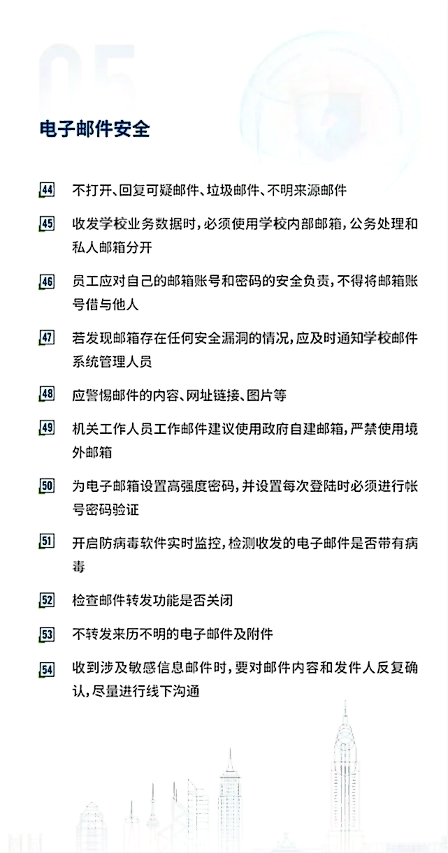 网络安全为大家,网络安全靠大家。保证校园网络的安全,需要依靠大家的共同努力。本期将从办公的角度给大家带来电子邮件、办公电脑及平常办公环境的安全知识点。