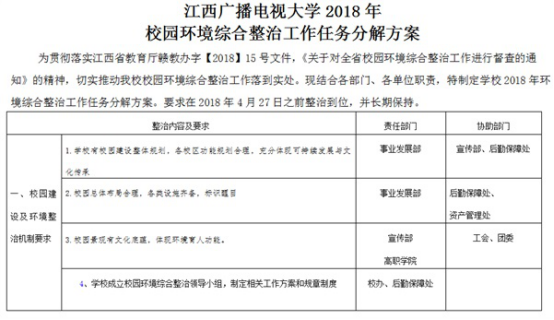 经过齐抓共管、多措并举,师生的工作、学习、生活环境得到了较大的改善,校园环境更加优美,校园环境综合治理取得了阶段性成果,但校园环境综合整治工作任重而道远,电大人还将尽心竭力、全力以赴,创建更加和谐平安美丽校园。