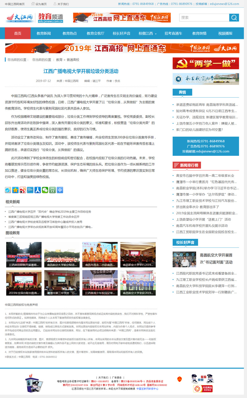 大江网刊登永利官网开展垃圾分类活动相关报道