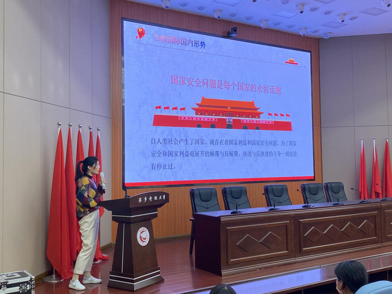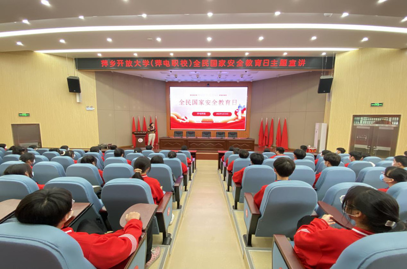利用各类宣传屏幕,展示活动宣传标语,循环播放宣传片,全力在校园营造全民国家安全教育浓厚氛围。同时,积极开展国家安全教育日安全专题宣讲,组织线上观看“国开大讲堂·国家安全教育公开课”,向学生宣传国家安全相关法律知识和开展国家安全教育的重要意义,进一步强化学生法律认知和安全意识。