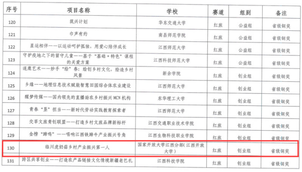 近日,第八届江西省“互联网+”大学生创新创业大赛圆满落下帷幕,yl23455永利官网在本届大赛中取得了1银1铜的好成绩。永利官网选送的《南国杉人》项目荣获职教赛道省级银奖,《临川虎奶菇,乡村产业振兴第一人》项目荣获“青年红色筑梦之旅”赛道省级铜奖。