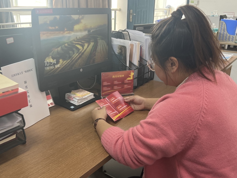 培训会结束后,教师工作部同志向教师们发放了《yl23455永利官网“师德师风”制度文件汇编》、《新时代高校教师职业行为十项准则》学习手册及摆台,以此作为鞭策与激励,督促每位教师铭记准则、坚守底线,将十项准则内化于心、外化于行,共同书写新时代师德师风建设的新篇章。